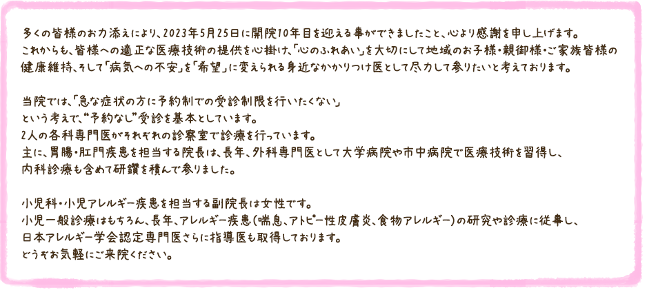 | 09:00~12:30 | ● | ● | ● | × | ● | ● ~13:00 (小児科~12:00) |